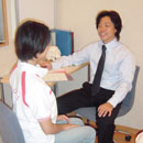 記入していただいた「診療調査用紙」「疼痛図」を基に、いくつか症状に対する質問をさせていただきます。どこが痛むか、痛みに変化はあるか、日頃のストレスについてなどです。プライバシーに配慮した個室で行いますので安心してお話下さい。また初めてChiropracticを受診される患者さんにとって安心して治療できるように説明させていただきます。