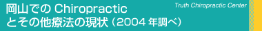 この3種の業種を合わせてChiropracticの正式な学位(国際基準の学位)を有しているのは岡山市でわずか2人だけである。(この段階でまだ私は入っていません)